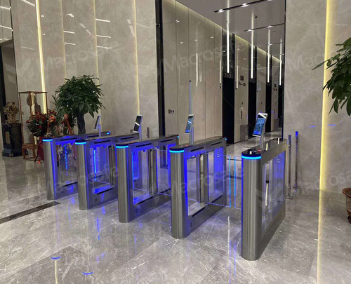 Turnstiles can integrate with multiple authentication technologies including RFID cards, biometric scanners, and facial recognition systems.